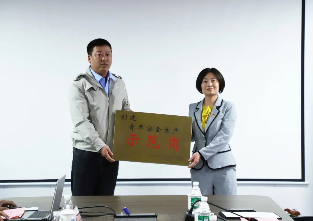 濱海新區(qū)團委副書記高媛為天津網(wǎng)絡安全中心項目青年安全生產(chǎn)示范崗授牌;