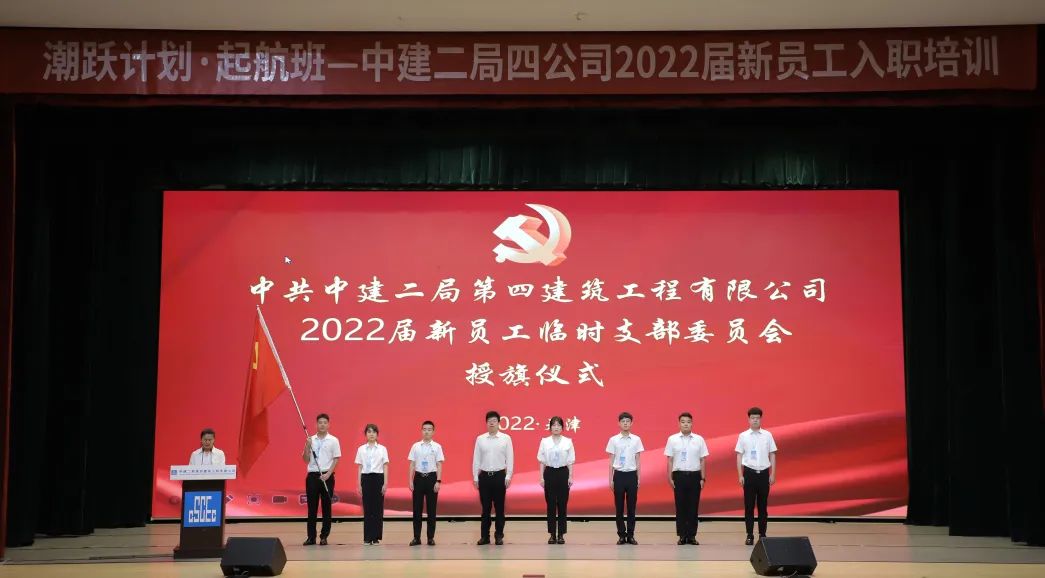 公司黨委常委、副總經理胡超為新員工臨時黨支部授旗。