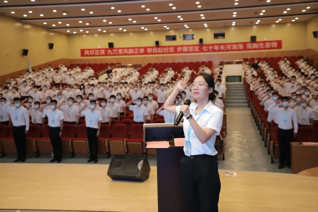在開班儀式上,新員工代表杜慧媛作入職發言,并帶領2022屆全體新員工宣誓。
