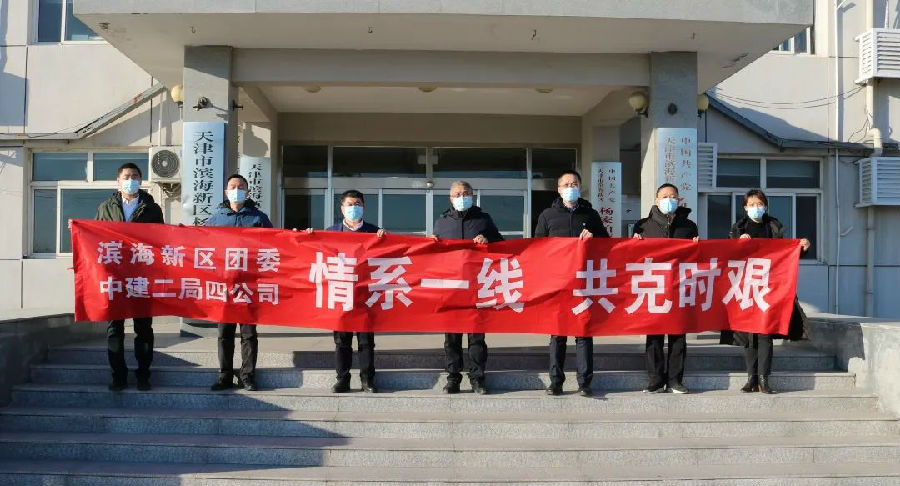 公司深耕屬地,主動(dòng)對(duì)接,與屬地?cái)y手抗疫。濱海新區(qū)團(tuán)委書記邵兵與公司黨委副書記、紀(jì)委書記、工會(huì)主席吳業(yè)欽一行到楊家泊鎮(zhèn)助力疫情防控工作,為楊家泊鎮(zhèn)捐贈(zèng)消毒濕巾、洗手液等防疫物資以及牛奶、礦泉水、方便面、火腿腸等食品。