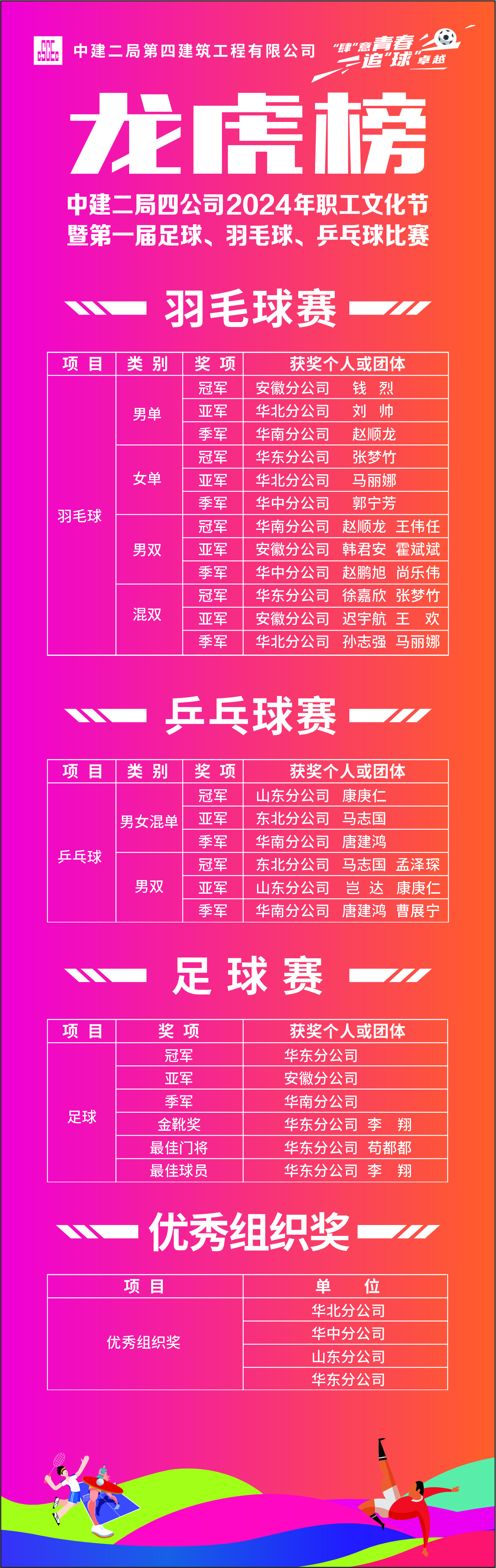 中建二局四公司2024年職工文化節暨第一屆足球、羽毛球、乒乓球比賽圓滿落幕!
