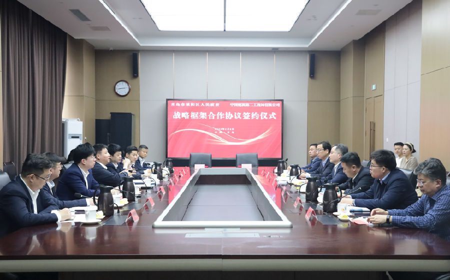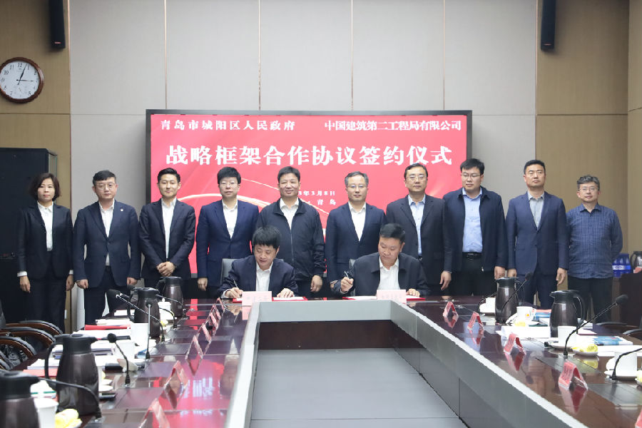 3月8日,中建二局黨委常委、副總經理李林鵬一行赴青島與城陽區委副書記、區長殷連剛開展座談交流,雙方就建立戰略合作伙伴關系、實現互利共贏開展深入交流,并共同見證中建二局四公司與青島市城陽區簽署戰略框架合作協議。中建二局四公司黨委書記、董事長劉帥參加。