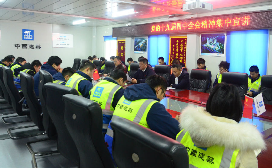 三是不折不扣落實十九屆四中全會精神,全面增強行動自覺。在基層項目全面掀起學習宣傳貫徹全會精神的熱潮,確保實現基層項目和員工、農民工群體的覆蓋面。